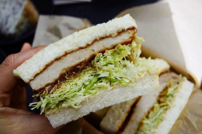 Котлету или мясо для сэндвича обязательно жарят в панировке, затем выкладывают на ломтик хлеба, сверху поливают японским овощным соусом «Тонкацу», присыпают нашинкованной капустой и накрывают вторым ломтиком белого хлеба.
