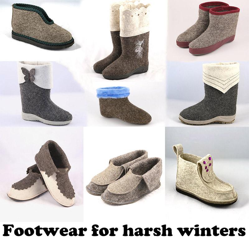Traditional Russian valenki felt boots is the best footwear for harsh winters. 100% sheep wool. Unisex footwear.
