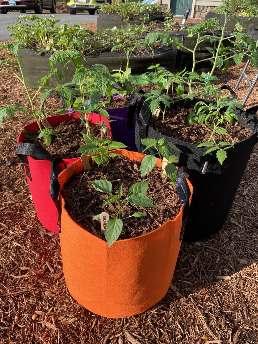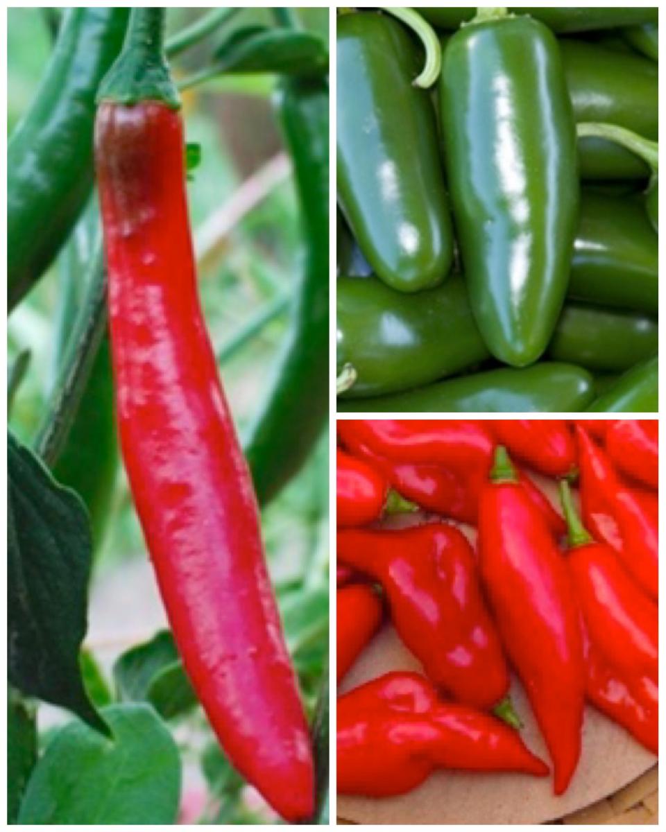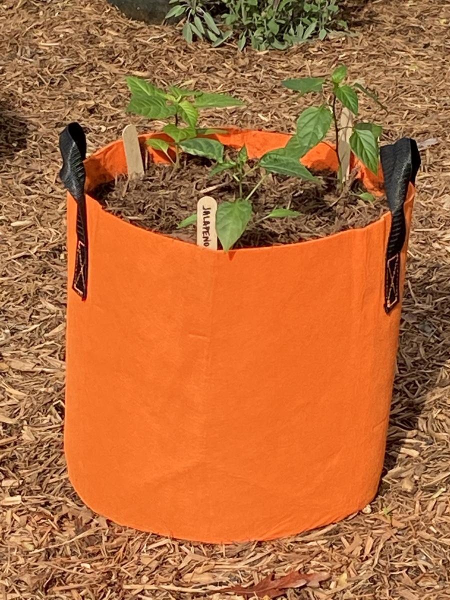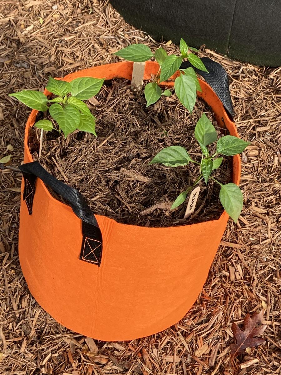 Trio of hot pepper plants grown from certified organic inputs potted in 7 gallon fabric pot. Specific colors while supplies last: Red, Orange, Lime Green, Purple, Brown, Black. Make a note in the order comments.