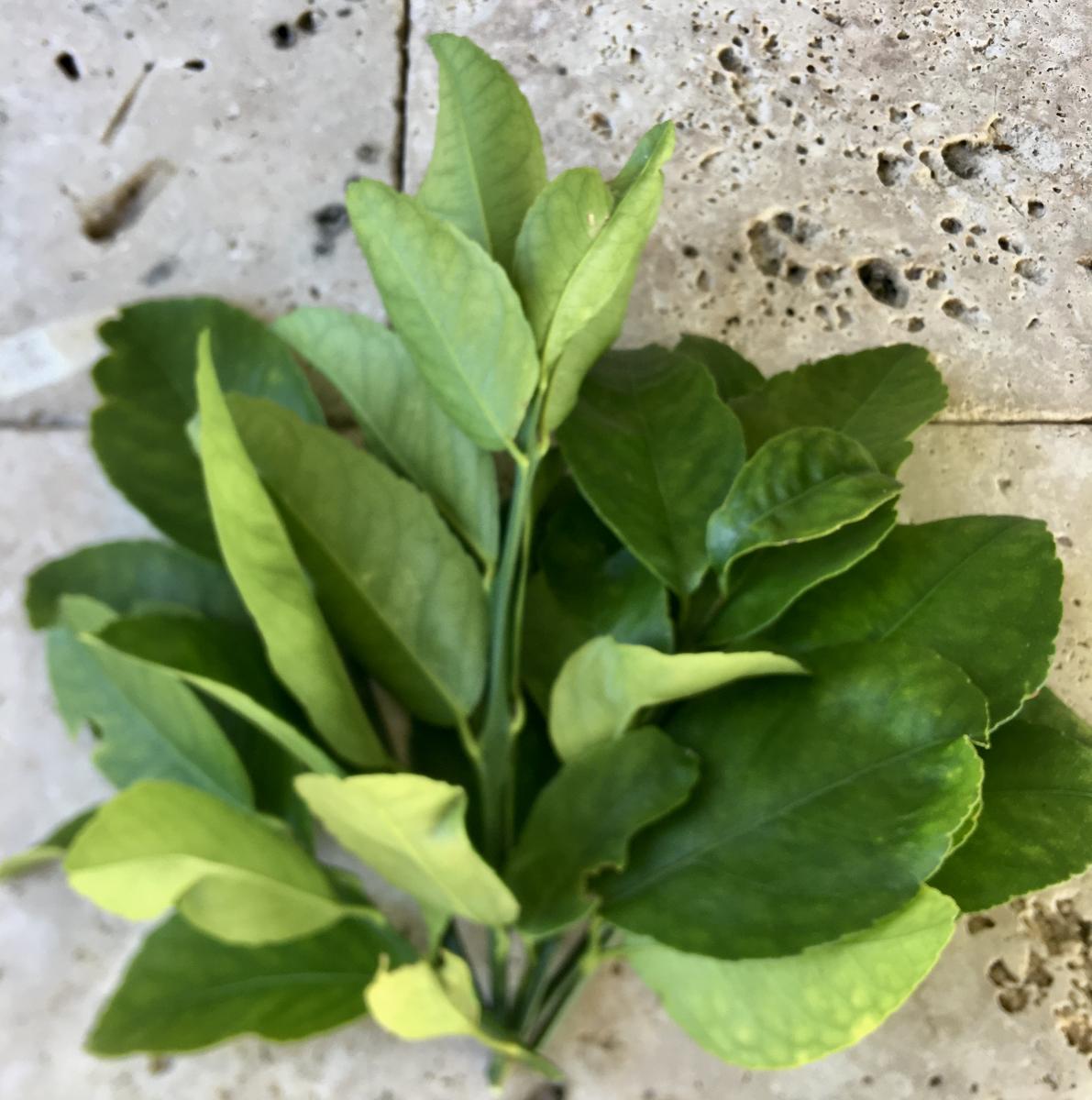 You’ll receive a freshly harvested bouquet bundle of Meyer lemon leaves.
