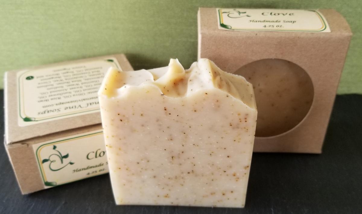 This warm fragrant soap is made with Clove Bud essential oil and smells amazing. Contains ground cloves for a mildly exfoliating lather.