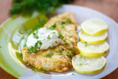 Выложите готовую рыбу на тарелку и подавайте с йогуртовым соусом. В качестве гарнира подойдет рис или запеченный картофель.